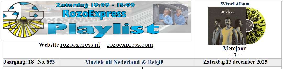 Programma + playlist voor Zaterdag 13 december