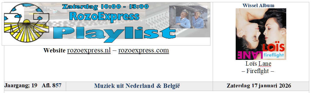 Zaterdag 17 januari – De zusje Loïs Lane staan centraal in deze uitzending, van het album Fireflight, wissel-album van deze week, draaien we maar liefst 4 tracks. Ieder uur 1 met uitzondering van het derde uur. Want onze XXL-track is ook afkomstig van dit album. Fireflight zien de zusjes Suzanne & Monique nog altijd als hun beste werk met Soul, Rock en Disco invloeden, een sound die de zusjes altijd graag wilde maken. Hoewel ons wissel-album uit 1995 komt, hebben we ook weer de nodige nieuwe muziek, zoals de nieuwe single van Claude met als titel Eb en Vloed, een song dat gaat over tegenstellingen in een relatie. Een fris klinkend nummer dat je ook in de zomer zou kunnen draaien.